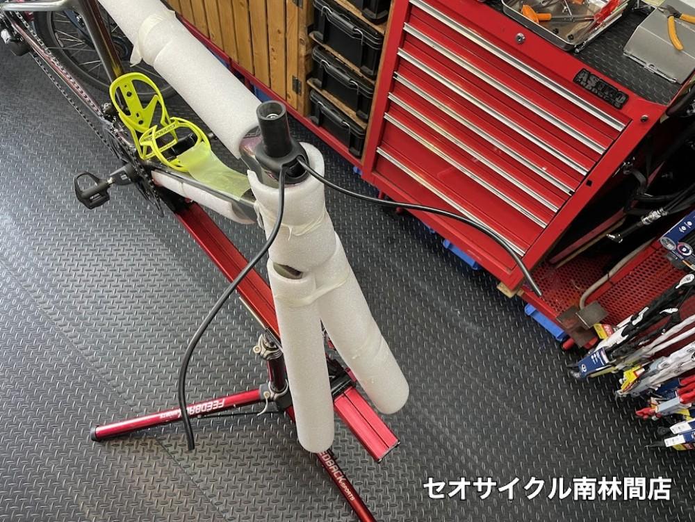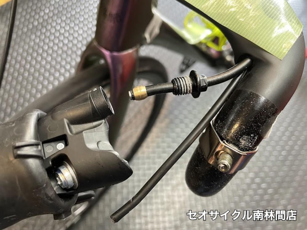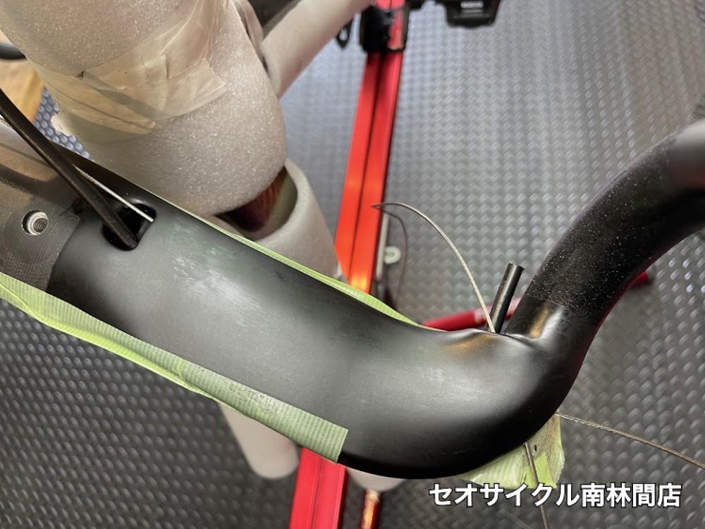 ダウンチューブ内を通るワイヤーも通し直しになりますので