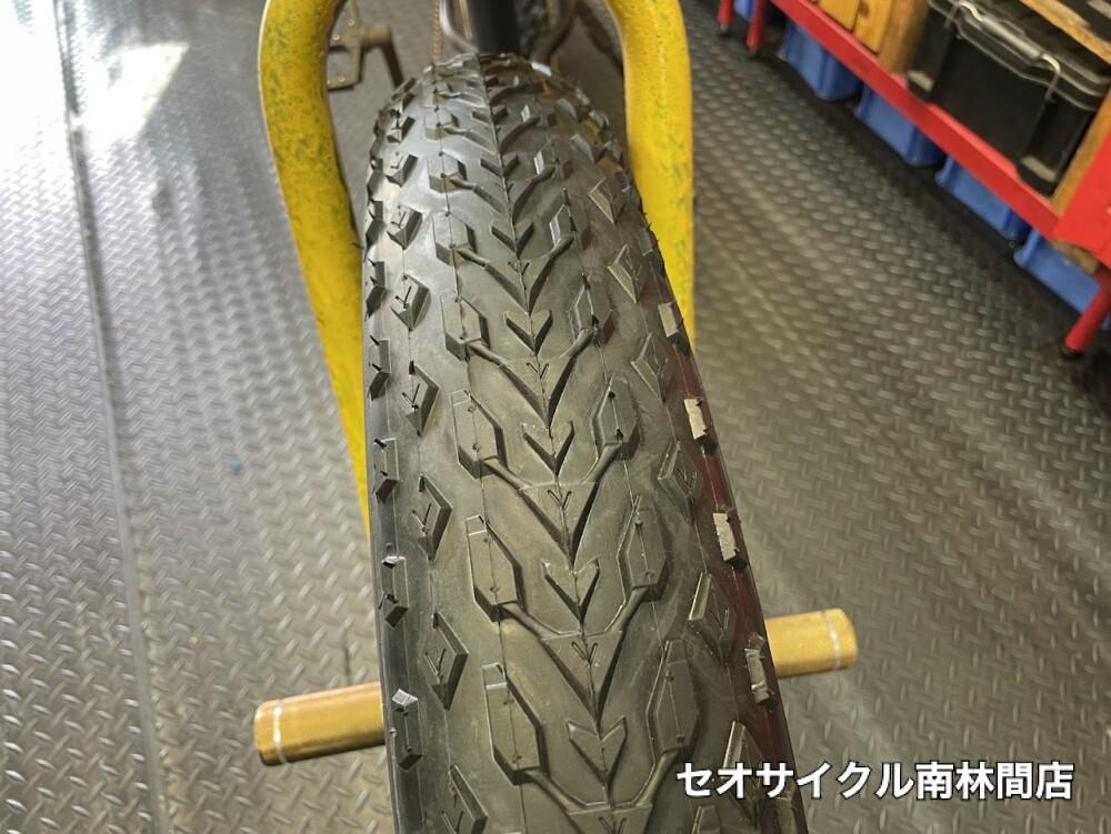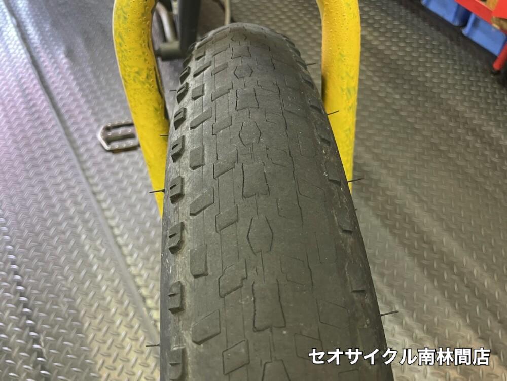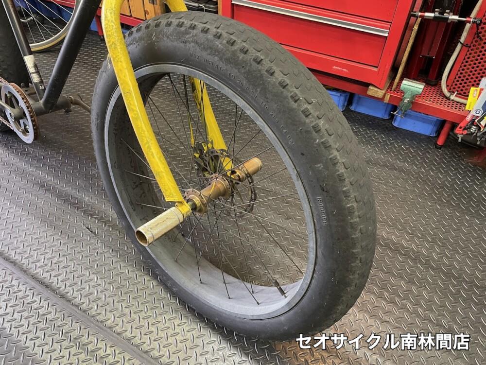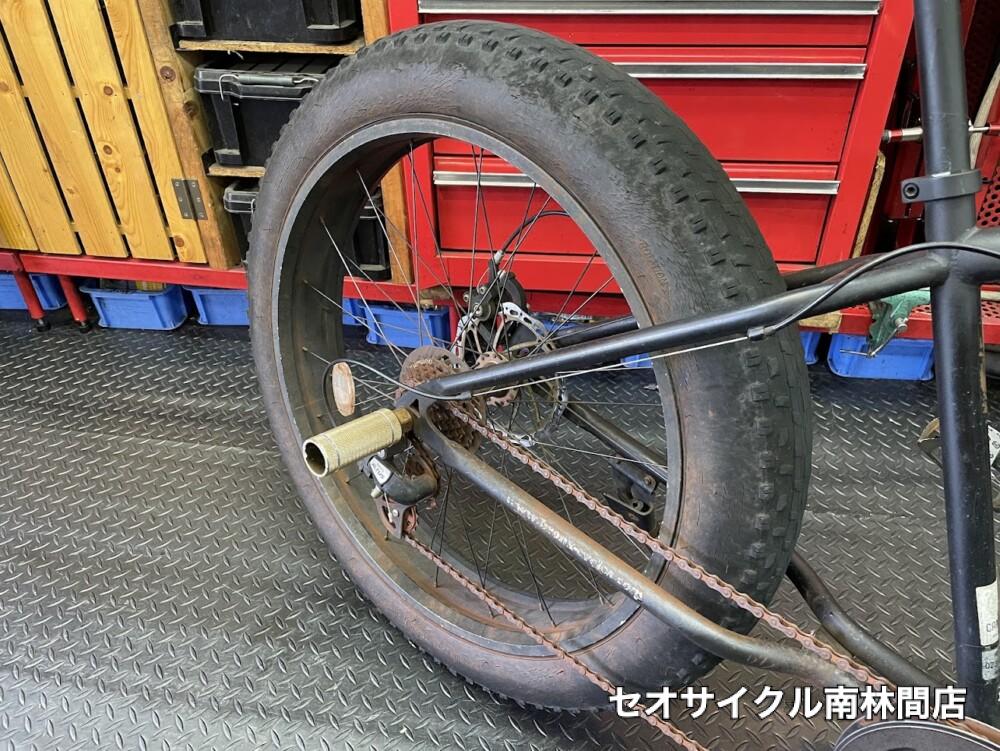 太ーいタイヤの自転車修理です。